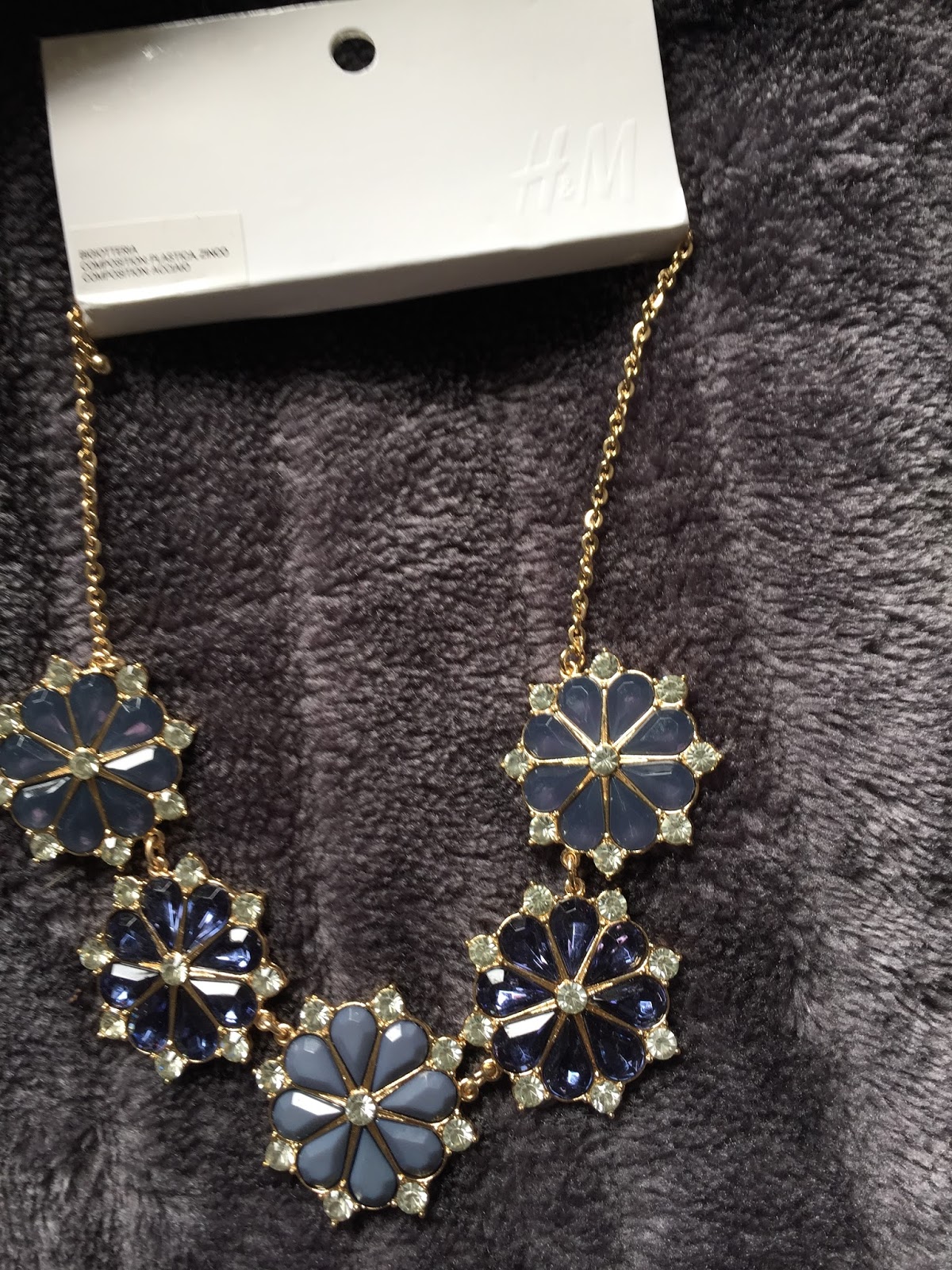 I then found the most beautiful statement necklace. I don't know but lately I find some really nice jewelry pieces in H&M which is beautiful because I do love statement necklaces and this one is just lovely. It's in lighter and dark blue with little diamonds. It's really not that heavy and absolutely wearable. I wore it with the orange dress as a little colour block.